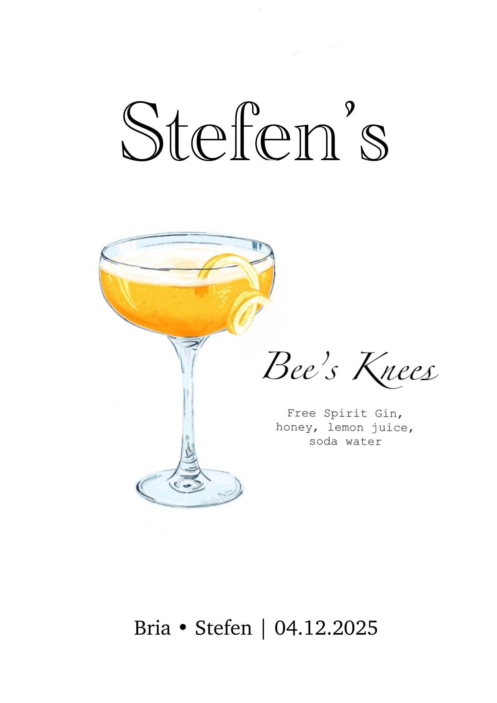 Shown is a custom downloadable mocktail wedding bar sign. Sign and images can be custom designed to fit your needs and elevate your event!